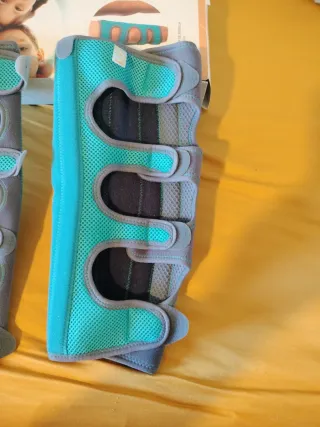 Par de estabilizadores de rodilla Orliman, diseñados para brindar soporte. - Color gris y turquesa. - Cierre de velcro ajustable. - Tejido transpirable.