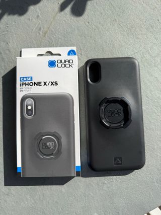 Funda protectora Quad Lock para iPhone X/XS en color negro. Diseñada para un ajuste seguro y fácil. Se encuentra en perfecto estado, como nueva. La compré y la utilicé 1 semana ya que me compré otro movil. - Compatible con iPhone X/XS. - Quad Lock. - Color negro.