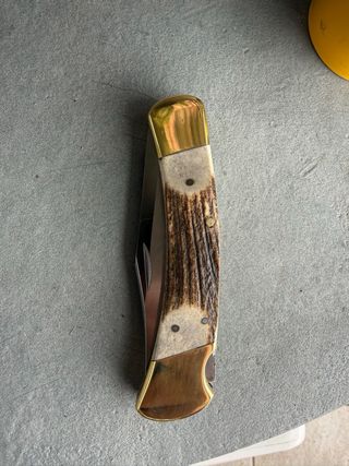 Navaja buck 110, personalizada artesanalmente con cachas en asta de ciervo. Trabajo perfectamente realizado. Sin holguras y sin ninguna muestra de uso. Con su funda original. ENVIO INPOST WALLAPOP