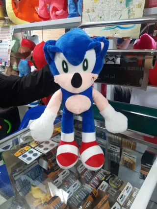 Peluche del personaje Sonic. - Color azul con detalles en blanco y rojo. - Material suave al tacto.