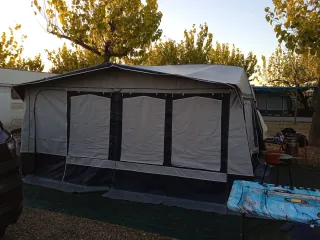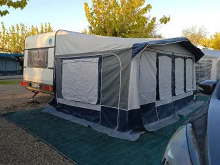 Avancé de caravana en buen estado, muy nuevo . Talla 8 , para caravanas de perímetro asta 8'60 Estaba en una caravana de perímetro 8'30 .. Todos los hierros !! - Estructura resistente. - Tejido duradero PVC en perfecto estado - Fácil de montar.