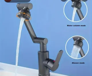 Grifo de cocina moderno con acabado en negro mate. Su diseño extensible y giratorio permite mayor comodidad. - Manguera extensible. - Caño giratorio 360°. - Dos modos de salida de agua: columna y ducha.