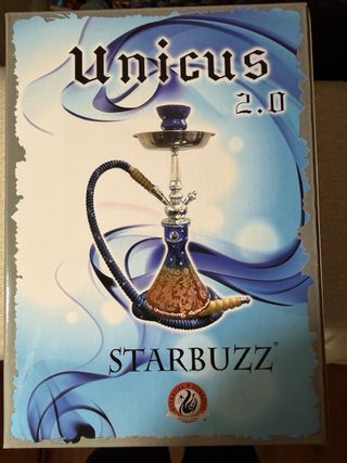 Unicus 2.0, completamente nueva y lista para usar. - Base de cristal decorada en azul y verde. - Mástil metálico plateado. - Manguera azul con boquilla de madera. - Cazoleta de silicona azul. - Plato metálico. - Pinzas para carbón. Para mas información contacte conmigo sin compromiso.