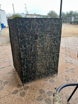 Puesto de caza con diseño de camuflaje. - Estructura de tela. - Ventanas para observación.