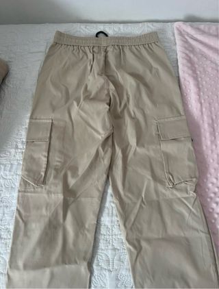 Pantalones estilo cargo de color beige, completamente nuevos. - Cintura elástica con cordón ajustable. - Bolsillos laterales tipo cargo. - Diseño moderno y cómodo.