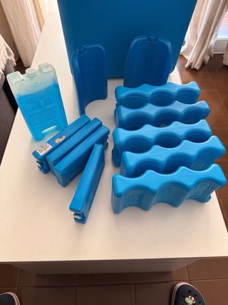Lote de 12 acumuladores de frío de diferentes tamaños y formas. Ideales para mantener la temperatura en neveras portátiles o bolsas térmicas.