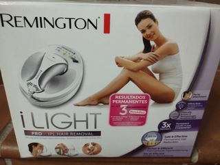 Depiladora Remington iLIGHT PRO con tecnología IPL para la eliminación permanente del vello. El dispositivo está en perfecto estado. - Tecnología IPL (Luz Pulsada Intensa). - Resultados permanentes en solo 3 tratamientos. - Incluye accesorio facial. No la he usado nunca.