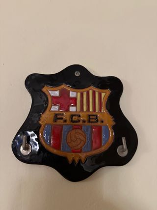 Escudo decorativo del F.C.B. fabricado en cerámica. - Diseño con los colores y emblema del club. - Acabado brillante. - Incluye dos ganchos para colgar llaves.