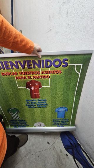 Este es un soporte para un cartel enrollable, ideal para eventos o presentaciones. - Estructura metálica plateada. - Base estable para mantener el cartel en posición. Me costo 300€