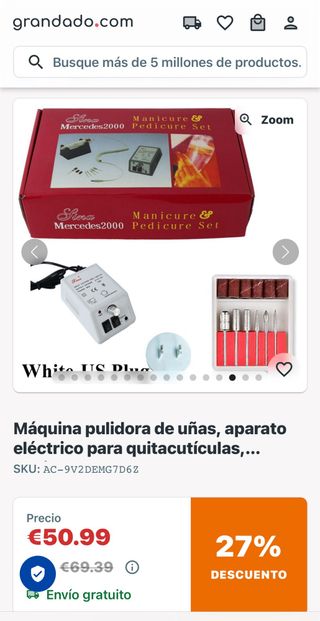 Set de manicura y pedicura eléctrica Mercedes2000. - Incluye máquina pulidora blanca con enchufe US. - Incluye juego de brocas para manicura y pedicura.