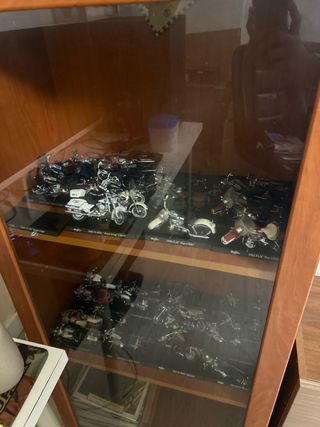 Colección de miniaturas de motocicletas Harley Davidson, ideal para coleccionistas. - Modelos detallados de motocicletas. - Incluye libros sobre Harley Davidson.