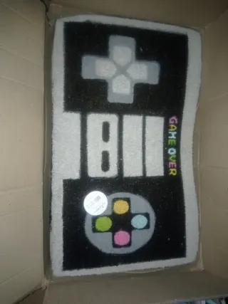 Tapete decorativo con diseño de control de videojuegos retro. Hay 100 si te llevas el lote a 4€/unidad - Diseño inspirado en mandos clásicos. - Incluye cruceta y botones de colores. - Texto GAME OVER en lateral. -Tengo cantidad