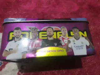 Caja metálica de la colección de cromos Adrenalyn XL. - Diseño con jugadores de fútbol. - Incluye BOX SERIE ORO.
