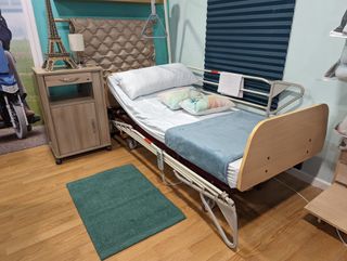 Cama articulada eléctrica 90 x 190 con carro elevador + barandillas + cabecero con asidero + piecero + colchón viscoelastico + trapecio