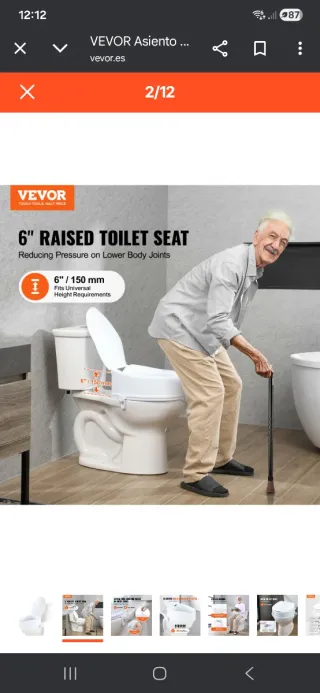 Asiento elevador para inodoro de la marca VEVOR. Diseñado para reducir la presión en las articulaciones de la parte inferior del cuerpo. - Altura adicional de 6 / 150 mm. - Se adapta a requisitos de altura universales. - Fabricado en plástico resistente.