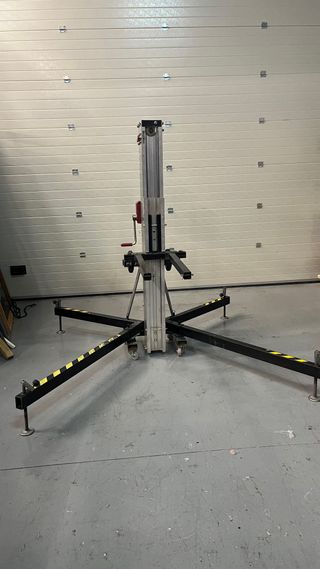 Torre elevadora Work de carga frontal. Estructura robusta y estable. - Base con patas ajustables para mayor seguridad. - Ruedas para facilitar el desplazamiento. - Manivela para elevación. Altura máxima 5,5 mts Carga máxima 250 kg Tenemos 4, las vendemos de s pares.