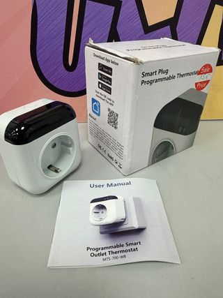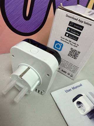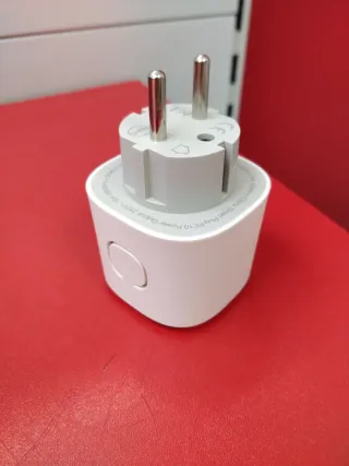 Adaptador de enchufe inteligente con conexión WiFi. Permite controlar dispositivos de forma remota. - Nuevo, pero sin embalaje. - Diseño en color blanco. - Botón de encendido/apagado integrado.