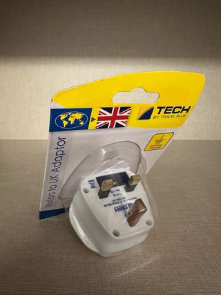 Adaptador de viaje para enchufes del Reino Unido. - Marca: TECH by Travel Blue. - Diseñado para visitantes del Reino Unido. - Conexión con toma de tierra.