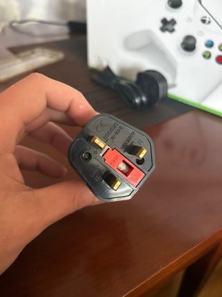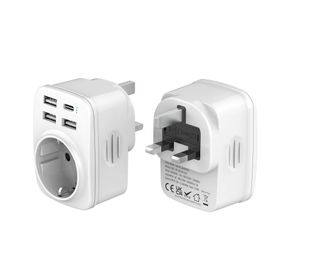 2 Adaptadores de enchufe para tomas de corriente del Reino Unido. - Color blanco. - Pines metálicos dorados.