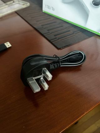 Cable de alimentación negro con enchufe tipo UK y conector. - Longitud del cable: [insert length if known, otherwise omit] - Color: Negro - Tipo de enchufe: UK (tres clavijas rectangulares) - Conector: [describe connector if possible, e.g., C5, C7, etc.]