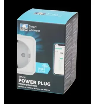 Enchufe inteligente LSC Connect con monitorización de energía. - Conexión WiFi 2.4GHz. - Voltaje: 230-240V AC. - Corriente: 16 Amperios. - Potencia máxima: 3680W.