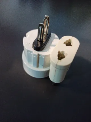 Adaptador de enchufe blanco para viajes. Útil para conectar dispositivos en diferentes tomas. - Diseño compacto. - Color blanco.