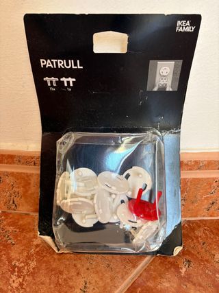Pack de protectores de enchufes de la marca Ikea, modelo Patrull. Ideales para la seguridad del hogar. - Incluye 11 protectores blancos. - Incluye 1 llave de extracción roja.
