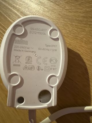 Cargador para cepillo eléctrico. - Cable blanco. - Enchufe europeo. - Braun