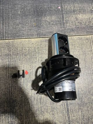 Regleta alargadora de la marca Naber con dos enchufes. - Diseño cilíndrico. - Acabado plateado y negro. 4057298117114 No se bloquea en la posición cerrada, presenta algunas abrasiones menores.