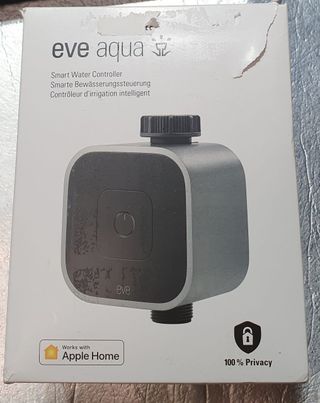 Eve Aqua (Apple Home): Control de riego inteligente mediante aplicación o Siri, incluso de forma remota, riega automáticamente el jardín/balcón, adecuado para adaptadores de múltiples enchufes, fácil de usar, rosca, no requiere puente 4260195392229 Sin usar, caja con defectos