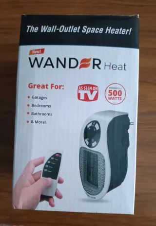 Calefactor portátil de 500W, ideal para calentar espacios pequeños. Viene en su caja original e incluye mando a distancia. - Se enchufa directamente a la toma de corriente. - Termostato ajustable. - Temporizador programable de hasta 12 horas. - Mando a distancia incluido.