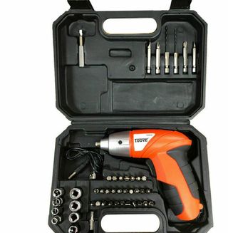 Taladro atornillador inalámbrico. 45 piezas en total. Contenido: - 1 destornillador inalámbrico. - 28 puntas de tornillo de 25 mm. - 6 puntas de tornillo de 50 mm. - 8 piezas x enchufes. - 1 adaptador de brocas de tornillo. - 1 cargador. , Ref: 14187.