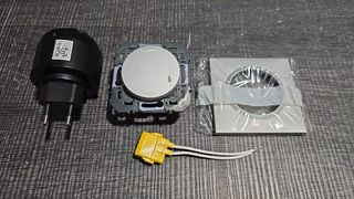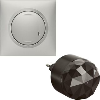 Pack de inicio de iluminación dooxie con Netatmo para vivienda conectada compuesto por: 1 interruptor de atenuación de 300 W sin neutros y 1 toma de control para enchufar en toma de corriente, viene con tapa y placa de efecto aluminio. 3414972360845