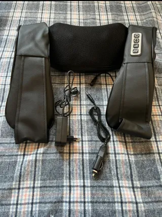 Set de masajeador cervical y lumbar con accesorios. - Cojín de masaje con funda de malla. - Adaptador de corriente para enchufe europeo. - Cable con conector para coche.