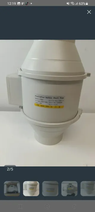 Ventilador para conducto, ideal para sistemas de ventilación. - Incluye cable de alimentación con enchufe. - Protegido con embalaje de espuma. 1 unidad disponible .