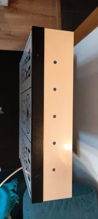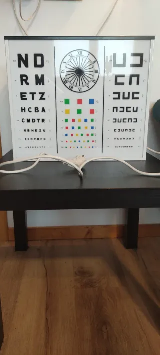 Optotipo modelo Wecker 5M, diseñado para pruebas de agudeza visual en adultos. Incluye un diseño de reloj y cuadrados de colores para diferentes pruebas. Por el enchufe, diría que es de principios de los 2000 - Optotipo Wecker 5M - Para adultos - Incluye reloj y cuadrados de colores Optotipo Óptica Oftalmología Coleccionables Óptica vintage
