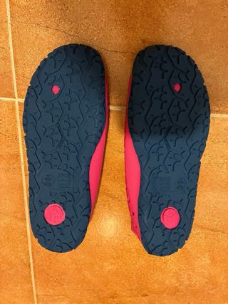 Escarpines Decathlon, color rosa. Son ideales para la playa o piscina. - Perfectos para proteger los pies de las piedras y otros elementos. - Diseño ligero y transpirable. - Color rosa intenso. - Talla: 33/34
