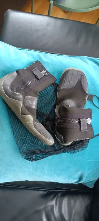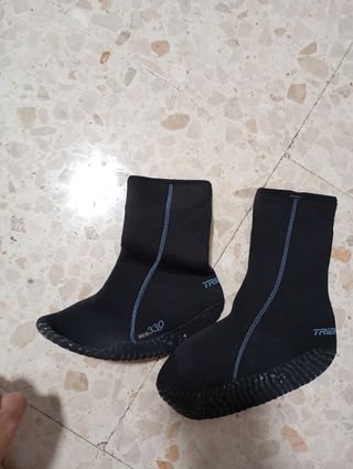 Botas de buceo usadas, en buen estado. Ideales para la práctica de deportes acuáticos. - Talla: (38/39) - Material: Neopreno - Color: Negro con detalles azules - Cremallera frontal - Suela resistente