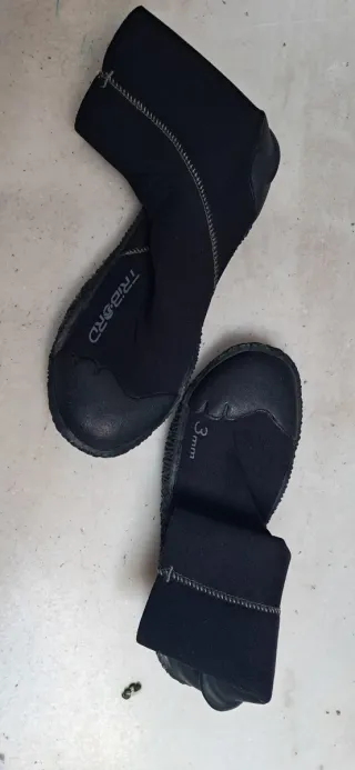 Escarpines de neopreno marca Tribord. Ideales para deportes acuáticos. - Color negro. - Talla 38