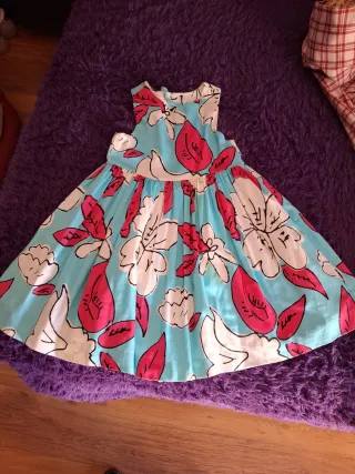 Vestido infantil con un alegre estampado floral.talla 9 años - Base azul cielo. - Flores en blanco, fucsia y detalles en negro. - Diseño sin mangas.