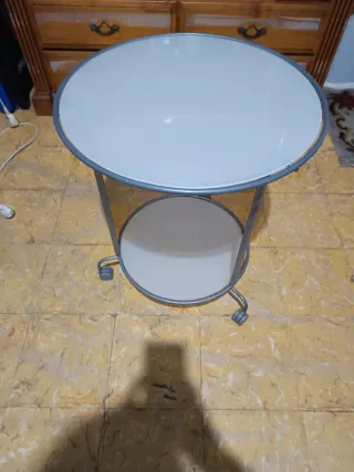 Mesa auxiliar redonda con ruedas