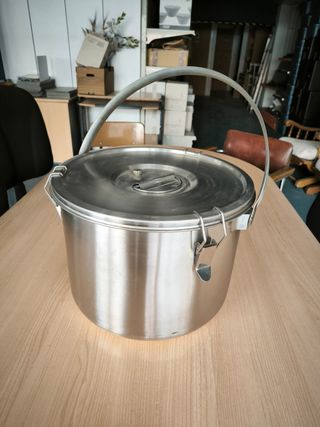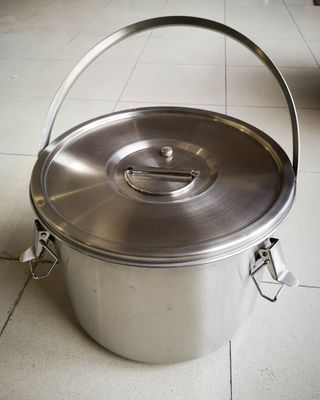 Contenedor cilíndrico de acero inoxidable con asa y tapa. Ideal pra transportes de catering. - Capacidad de 12 litros. - Construcción robusta en acero inoxidable. - Asa metálica para facilitar el transporte. - Tapa con cierre de seguridad. RECOGIDA EN MI ALMACÉN EN HORA ACORDADA