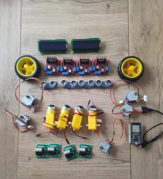 Precio negociable Kit de componentes electrónicos usados en proyectos reales, todo probado y funcionando. Incluye: 50 pcs de transistores reguladores de voltaje LM317 + serie 78xx 10 sensores infrarrojos + 10 leds (complementarios) 4 motores DC amarillos con 2 ruedas 4 sensores ultrasónicos HC-SR04 4 controladores de motor L298N 2 pantallas LCD (Arduino / ESP32) 1 ESP32 con módulo WiFi 5 motores paso a paso con 4 controladores