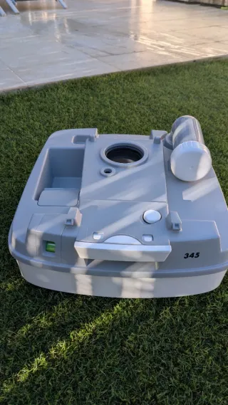 WC portátil Thetford Porta Potti 345, ideal para camping o caravanas. Incluye líquido de limpieza y tratamiento. Usado solo una vez, literalmente como nuevo. - WC portátil de alta calidad. - Líquido de limpieza AMBITI WC (2L). - Dos botes de AQUA KEM BLUE SACHETS (tratamiento para aguas residuales). NO ES NEGOCIABLE!!!!