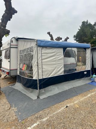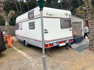 Caravana Moncayo Joven 480 con tres ambientes. Caravana con años pero muy cuidada y actualizada. Suelo nuevo, instalación eléctrica repasada y actualizada, nevera grande con congelador, litera posibilidad de hacerla triple, comedor convertible en cama pequeña, cama grande con baúles debajo, llantas de aluminio y neumaticos con pocos km. Esta al día y circulando a la perfeccion. Toldo Caravanstore y cerramiento.