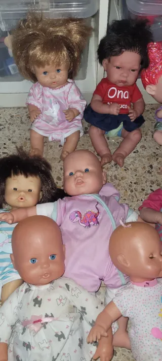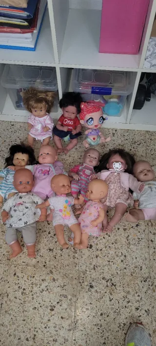 Conjunto de 11 muñecas de diferentes estilos y tamaños. - Muñecas niña/niño de tamaño infantil. - Variedad de ropa y accesorios. - Ideales para coleccionistas o juego. Precio negociable
