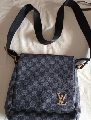 Bolso bandolera con el icónico estampado Damier de Louis Vuitton. Un accesorio elegante y práctico. - Estampado Damier. - Detalle de logo LV dorado.