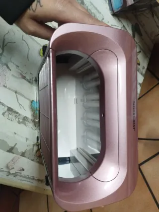 Lámpara para uñas de la marca SilverCrest, en color negro y rosa. - Diseño moderno con acabado texturizado. - Abertura frontal para introducir la mano. - Indicador luminoso en la parte superior.