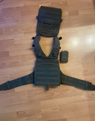 Es el mismo que ya tengo subido pero con más fotos Chaleco táctico de color verde militar, con múltiples compartimentos y un diseño MOLLE. - Incluye un parche de la bandera de Estados Unidos. - Dispone de varios bolsillos frontales y laterales. - Cierre ajustable.