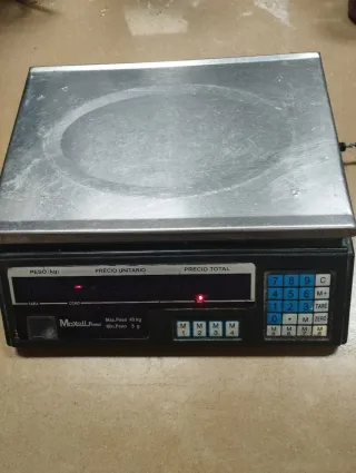 Báscula digital Maxell Power con capacidad máxima de 40 kg y mínima de 5 g. - Pantalla digital. - Función CERO para tarar. - Diseño compacto. Se vende por cese de negocio. NOTA: El bote de miel no está incluido en el anuncio, ni en el precio.